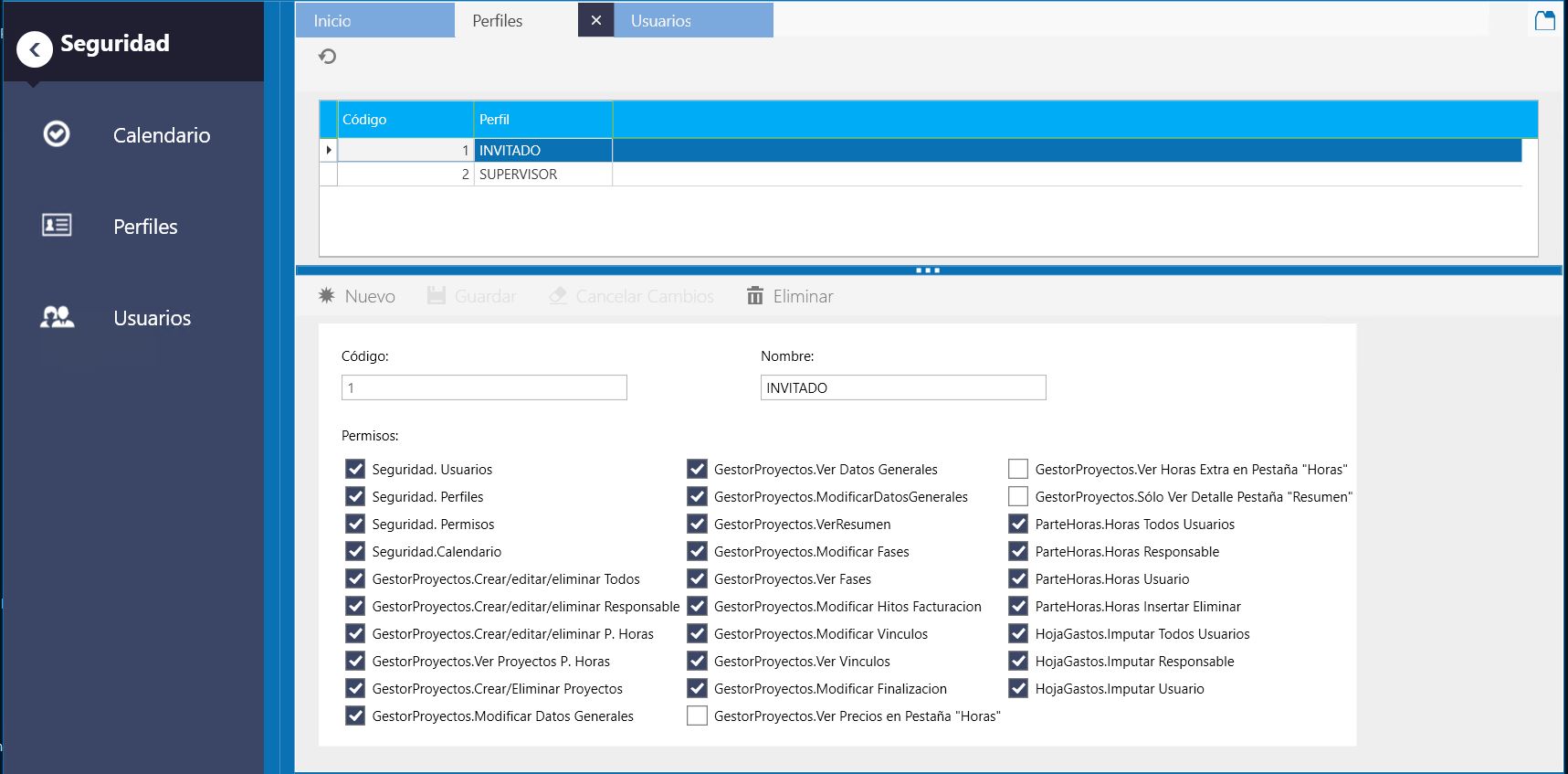 - Configuración de perfiles